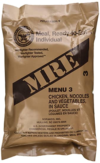 Also known as a meal ready to eat, an MRE is a completely self-contained, complete meal. Eating just one MRE will provide you with the calories and nutrients you need to power your day.